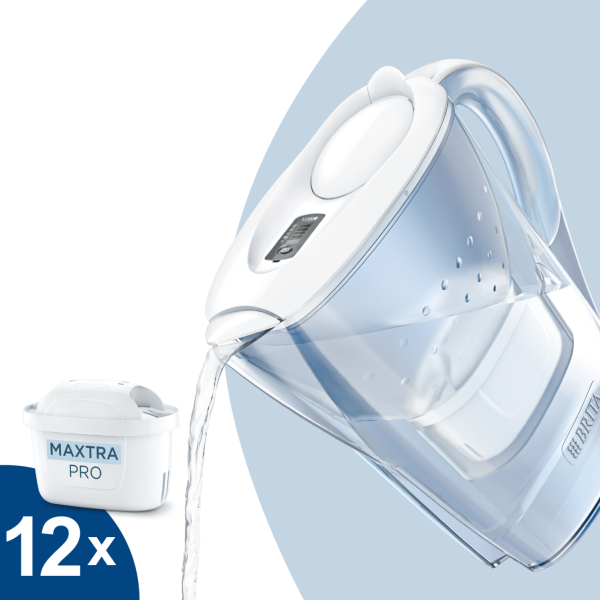 Lieferumfang: 1 x BRITA Tischwasserfilter Marella weiss inkl. 12 MAXTRA PRO Pure Performance Filterkartuschen