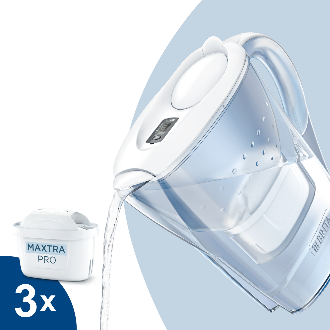 BRITA Marella avec pack de 3 cartouches MAXTRA PRO par BRITA, l’expert des filtres à eau. Jusqu’à 12 semaines d’eau filtrée, fraîche, au goût agréable.
